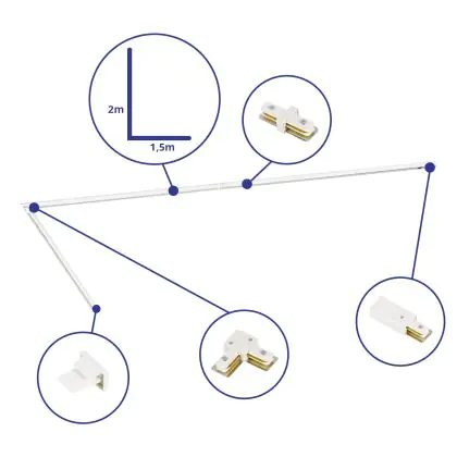 | Nome del fabbricante | Complete L shaped 1-Phase Track Set White – 1.5 x 2 meters incl. End Cap, Power Connector and L-Con | |