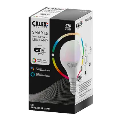 Descrizione Calex Smart Sferico LED Bulbo E14 5W 470lm 2200-4000K | Tuya Wifi - Color Ambiance + Tunable Bianca