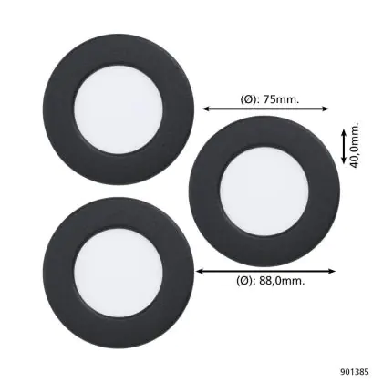 Descrizione Confezione Multipack 3x Eglo Incasso Faretti Fueva 6 Plastica Nero 11.1W 1350lm - 827-840-865 CCT