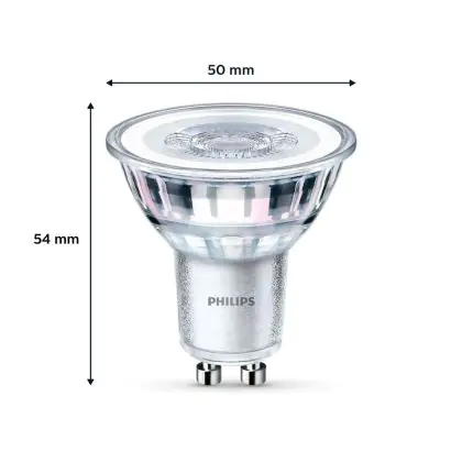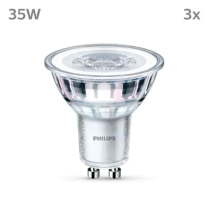La Confezione Multipack 3x Philips Faretti LED GU10 PAR16 4W 255lm 36D - 827 Bianco Molto Caldo è perfetta per la sostituzione della convenzionale Lampada alogena W GU10 con colore della luce 827 Bianco Molto Caldo. Questa Lampada ha una forma Spot con un diametro di 50mm. I due perni sono distanti tra loro 10mm. Questa lampada funziona con la 220V-230V e quindi non ha bisogno di trasformatori. Passare a LED ti offrirà molti vantaggi!