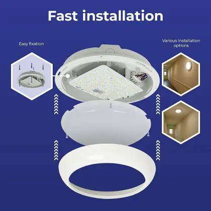 Prima di sostituire un vecchio apparecchio di illuminazione con uno nuovo è sempre consigliabile controllare le dimensioni. Installare questa plafoniera LED è molto facile: basta leggere attentamente le istruzioni e utilizzare il materiale di installazione fornito (viti, tasselli, ecc.). Se hai dubbi sull’installazione consulta un installatore certificato. Per questa lampada offriamo una garanzia di 5 anni.
