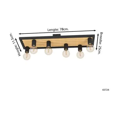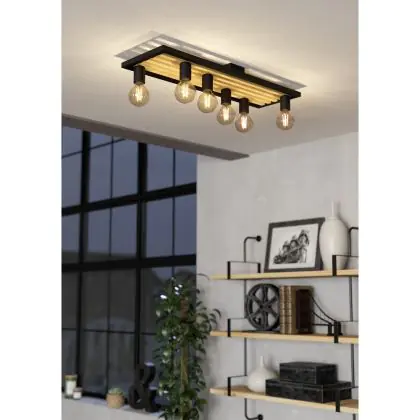 Eglo Luce da soffitto Consett Acciaio Legna Nero Marrone | IP20 - Adatto per 6x E27