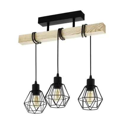 Eglo Luce da soffitto Townshend 5 Acciaio Legna Nero | IP20 - Adatto per 3x E27