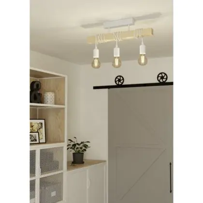 Eglo Luce da soffitto Townshend Acciaio Bianca Legna | IP20 - Adatto per 3x E27