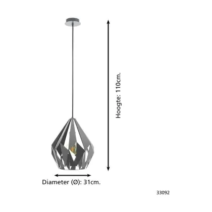 Eglo Luce Pendente Carlton 1 Acciaio Grigio | IP20 - Adatto per 1x E27