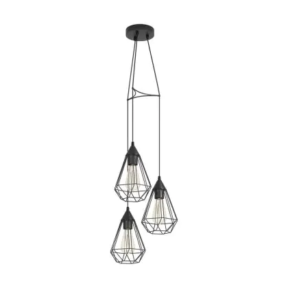Eglo Luce Pendente Tarbes Acciaio Nero | IP20 - Adatto per 3x E27