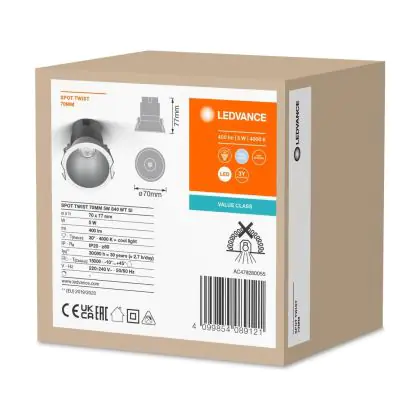 | Nome del fabbricante | LED SPOT RECESS TWIST PRO 70mm 5W 4000K White Silver | |