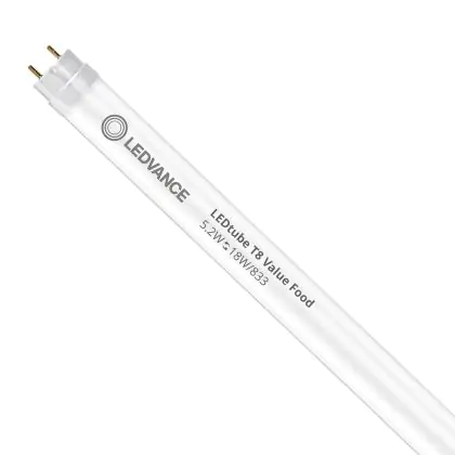 Il Ledvance Tubo LED T8 Performance Food (EM/Mains) Standard Output 5.2W 500lm - 833 Luce Calda | 60cm - Sostitutiva 18W è l’alternativa perfetta per il tubo fluorescente standard 18W nelle plafoniere con un reattore. Con questo tubo LED hai una garanzia di una vita media utile molto lunga e 5 anni Lampadadiretta.it di totale garanzia. .