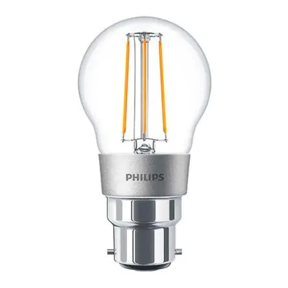 La Philips Classic LED Lustre B22 Sferica Filamento Chiara 4.5W 470lm - 827 Bianco Molto Caldo | Dimmerabile - Sostitutiva 40W è la sostituzione perfetta per la tua lampada convenzionale 40W B22. Sostituire con il LED ti offrirà molti vantaggi.