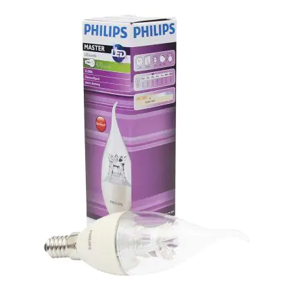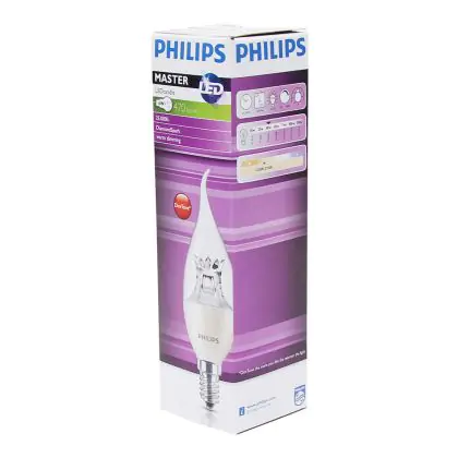 Descrizione Philips MASTER LED Candela E14 Piegato-tip Corona Chiara 6W 470lm - 822-827 Dim To Warm | Dimmerabile - Sostitutiva 60W