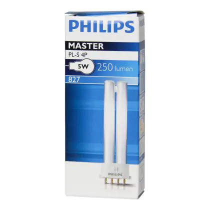 Le Philips PL-S 5W 827 4P (MASTER) sono lampade fluorescenti compatte veramente efficienti dal punto di vista energetico in quanto consumano poca energia e sono caratterizzate da una vita media incredibilmente lunga. La base di queste lampade fluorescenti a basso consumo é del tipo 2G7 a 4 pin (perni). La potenza delle medesime é pari a 5W. Quando decidi di sostituire le tue vecchie lampade fluorescenti compatte, é di estrema importanza mantenere medesima base, numero di pin (perni) e stessa potenza: se anche uno solo di questi parametri é differente dalle tue lampade originali, con tutta probabilità non riuscirai a procedere con l'installazione.