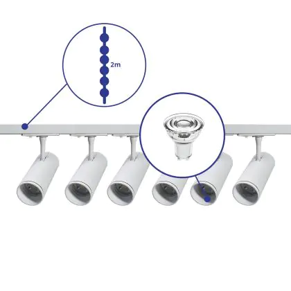| Nome del fabbricante | Complete Straight 2-meter 1-Phase Track Set White incl. 6x Spot fixture + GU10 2700K 3W Dim – 2x 1 M | |